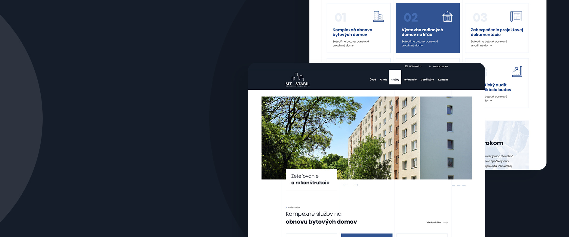 Nový web pre stavebnú spoločnosť MT Stabil, špecializujúcu sa na renováciu bytových domov, rôzne pozemné stavby až po konštrukčne a technicky náročné stavebné diela. Klient sa rozhodol kreatívne prezentovať svoje služby a práce prostredníctvom webovej stránky. Pri navrhovaní som uprednostnil minimalistický industriálny dizajn v kombinácii bielo-modrej farby. Výsledkom je jednoduchý a moderný web pre stavebnú firmu MT Stabil.